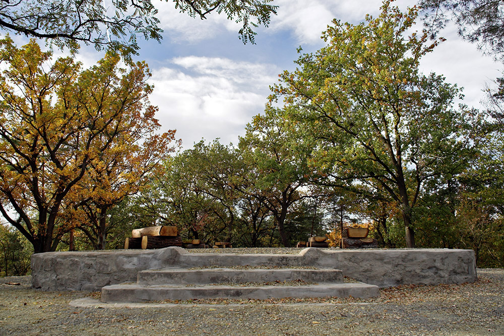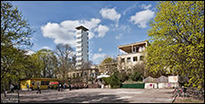 | Blick vom Müggelturm Richtung Langer See (#1); Müggelturm (#2); im Verfall befindliche Gebäude der ehemaligen Gaststätte Müggelturm (#3 + #4) |